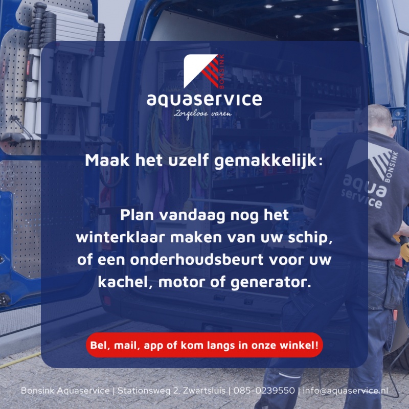 Plan vandaag nog het winterklaar maken van je schip, of een onderhoudsbeurt voor je kachel, motor of generator.